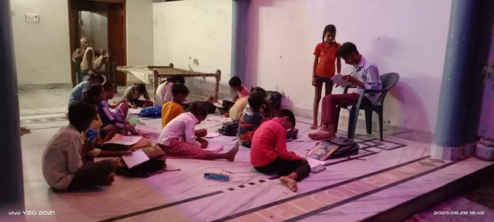 Shri Ramesh shared, "I learned about the Kendra from my mother's village Imamganj. Shri Ram Sevak is running the Q.C. Shiksha Kendra at Imamganj. I received complete information from Ram Sevak Bhaiya and some additional details from Brij Rani Didi (who runs the Q.C. Shiksha Kendra at Kandai). About 80% of the inspiration to open the Q.C. Shiksha Kendra came from within me and 20% from Brij Rani Didi. You see, I had already been helping children with their studies even before starting the Shiksha Kendra."