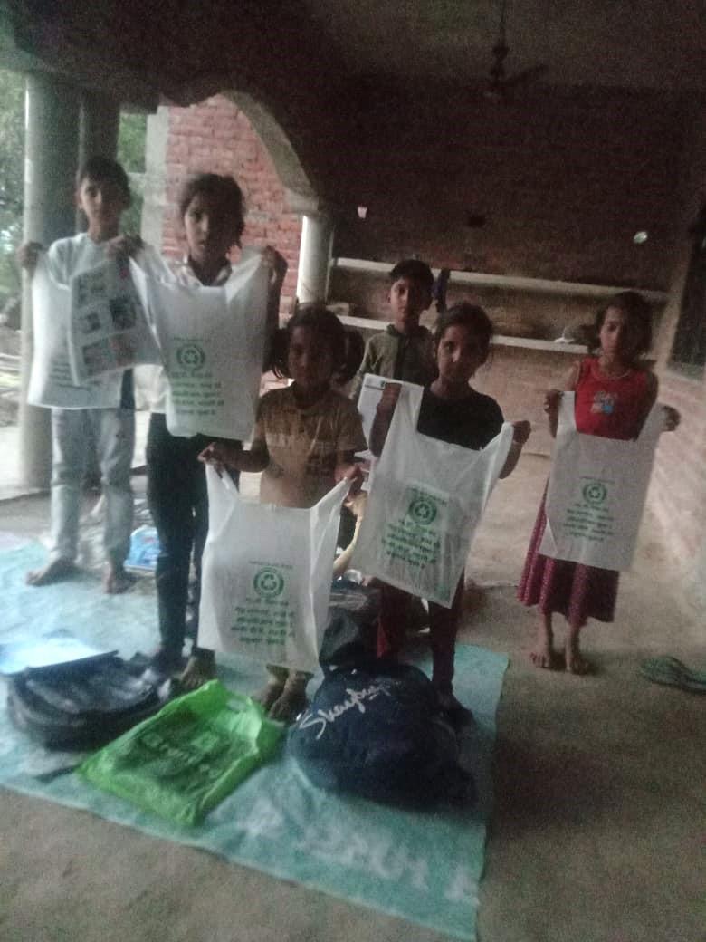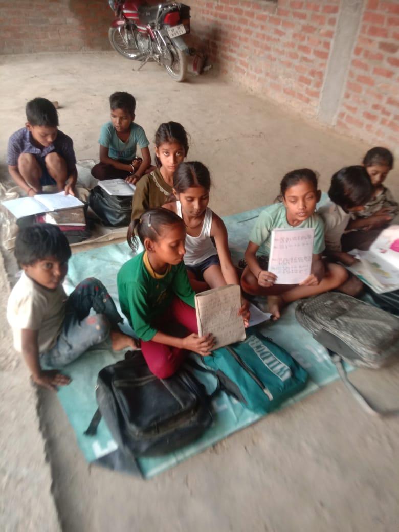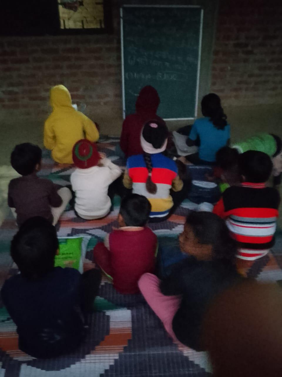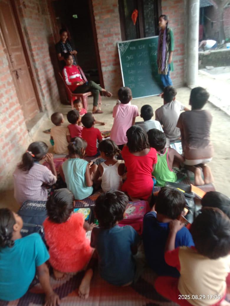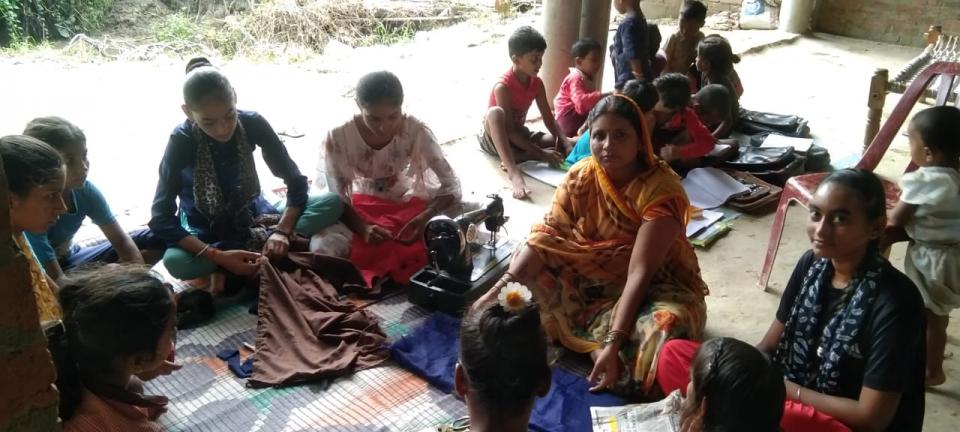 नयापुरवा शिक्षा केंद्र के बच्चो को बृजरानी जी (कंदई ) के द्वारा सिलाई का प्रशिक्षण देते हुए