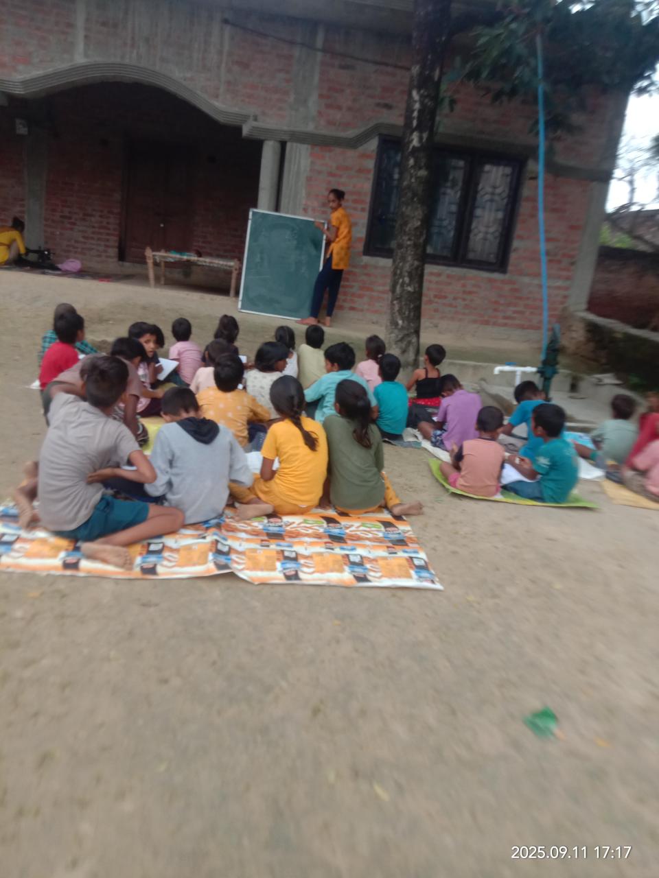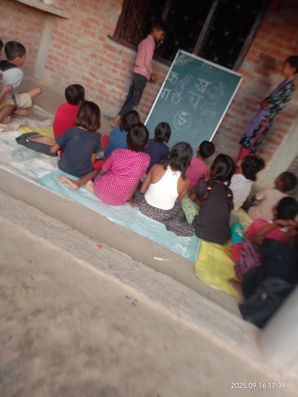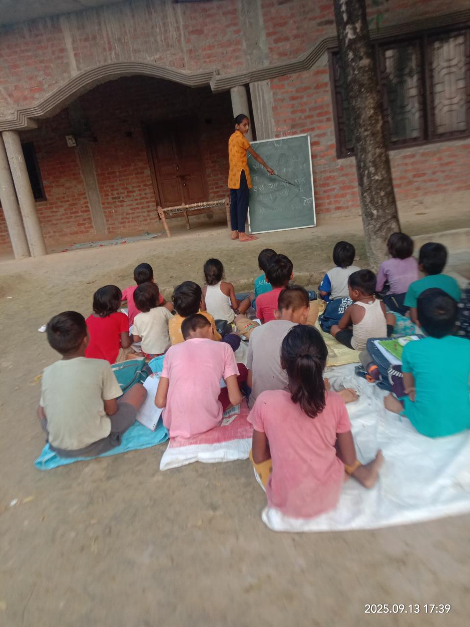 नयापुरवा शिक्षा केंद्र के बच्चो को बृजरानी जी (कंदई ) के द्वारा सिलाई का प्रशिक्षण देते हुए